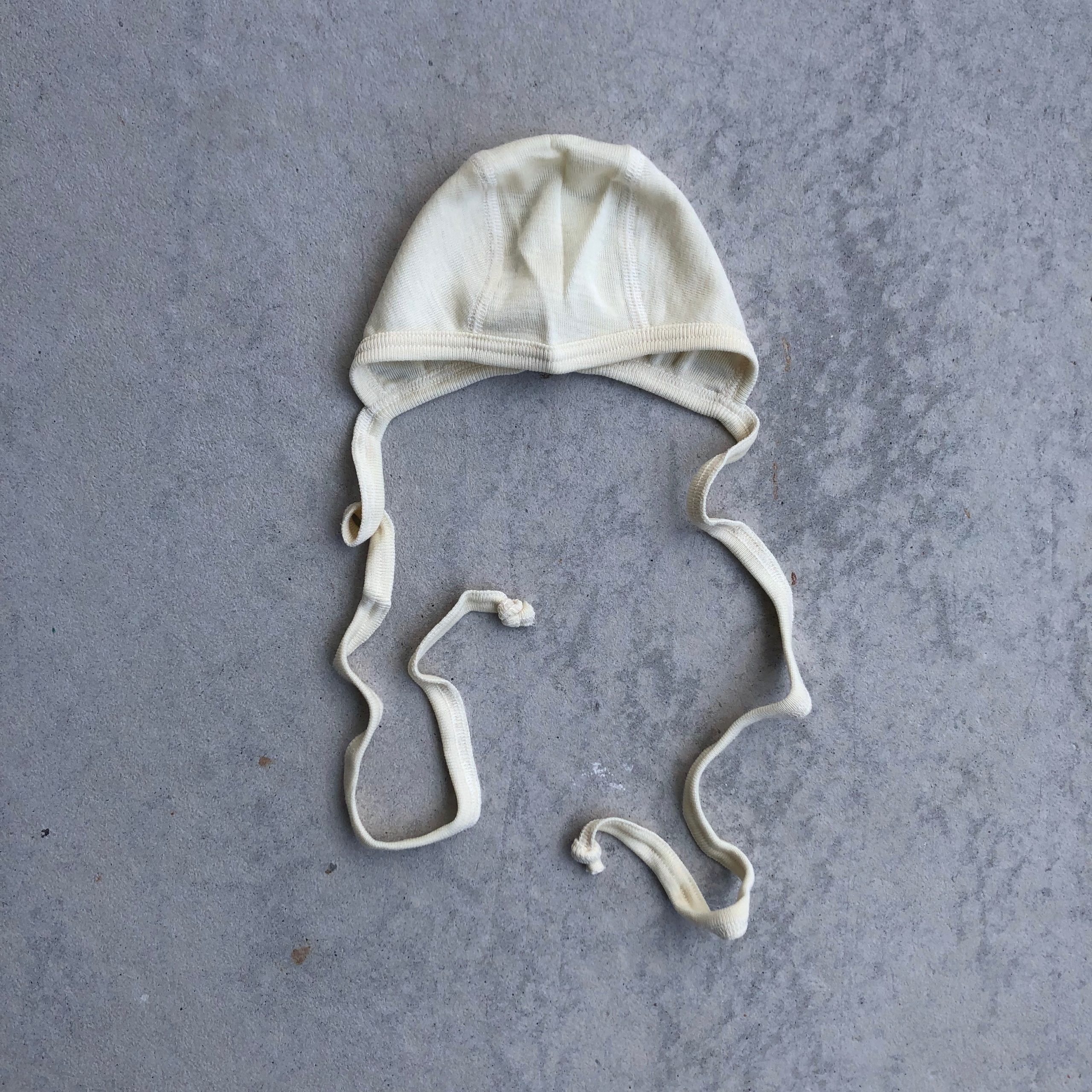 Mjuk och behaglig hjälmmössa till baby med knytband. GOTS-certifierad ullsilke håller bebisen lagom varm.