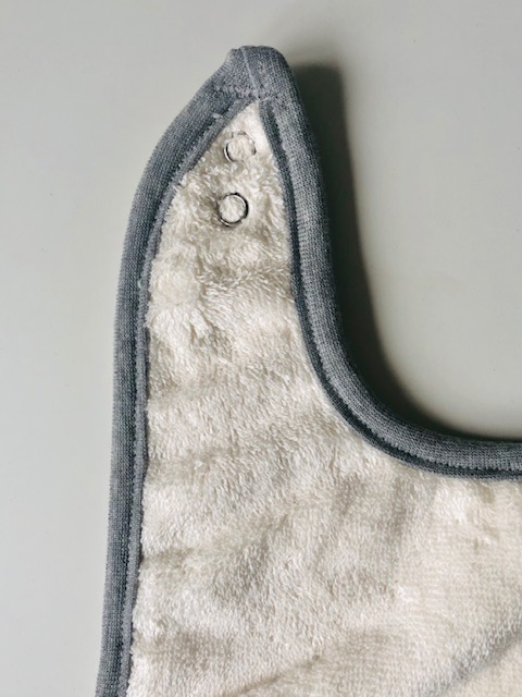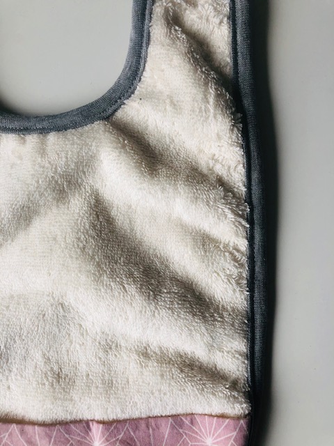 Mönsterplaceringen i tyget varierar från haklapp till haklapp.