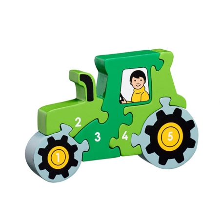 Traktorpusslet består av tio bitar med siffror 1-5 på. Toppen att lära sig siffror och vilken ordning de kommer i samtidigt som det är en utmaning att få ihop traktorn. Lägg siffra efter siffra rätt och pussla ihop fordonet så det kan börja gräva! Pusslet är handgjort av gummiträ och målat med giftfri färg. Ger många timmars rolig och lärorik lek! Utmana barnet genom att ta i sär pusslet innan hen bygger ihop det första gången så blir resultatet en överraskning i sig! Alla bitar är lätta att greppa för små händer och pusslet är även lätt för barnet att ställa stadigt då det är 2,5 cm brett. Andra sidan är blank, så du även kan träna på färgerna. Vacker även som inredningsdetalj i barnrummet!