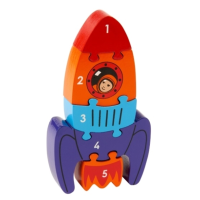 Pusslet består av fem bitar med siffrorna 1-5 på. Toppen att lära sig siffror och vilken ordning de kommer i samtidigt som det är en utmaning att få ihop raketen till en helhet. Lägg siffra efter siffra rätt och pussla ihop raketen så det kan skjutas upp i rymden! Pusslet är handgjort av gummiträ och målat med giftfri färg. Ger många timmars rolig och lärorik lek! Utmana barnet genom att ta i sär pusslet innan hen bygger ihop det första gången så blir resultatet en överraskning i sig! Alla bitar är lätta att greppa för små händer och pusslet är även lätt för barnet att ställa stadigt då det är 2,5 cm brett. Andra sidan är blank, så du även kan träna på färgerna. Vacker även som inredningsdetalj i barnrummet!