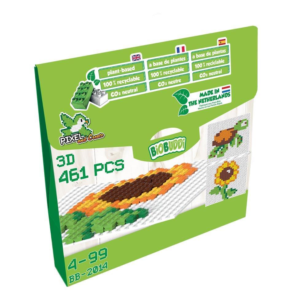 Här har du 450 bitar plantbaserade små pixlar som bildar 2D eller 3D bilder i mosaik med motiv av blomma och sköldpadda. Tillverkade av överblivna delar av sockerrör och målade med giftminimerade färger. Håller år efter år och är utmanande och roliga att bygga med både för små och stora barn. Lätt för små händer att bygga, ändra och bygga om. Använd de färdiga instruktionerna eller den egna fantasin! Många timmars kreativt pyssel utlovas! Ett bra alternativ till pärlplattor i plast som kan frigöra ohälsosamma kemikalier vid uppvärmning. Pixlarna behöver inte strykas på utan fastnar i varandra eller i plattan.